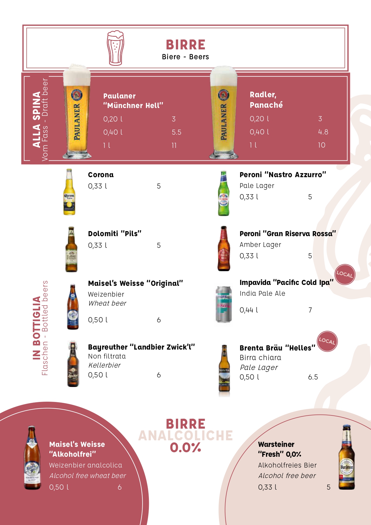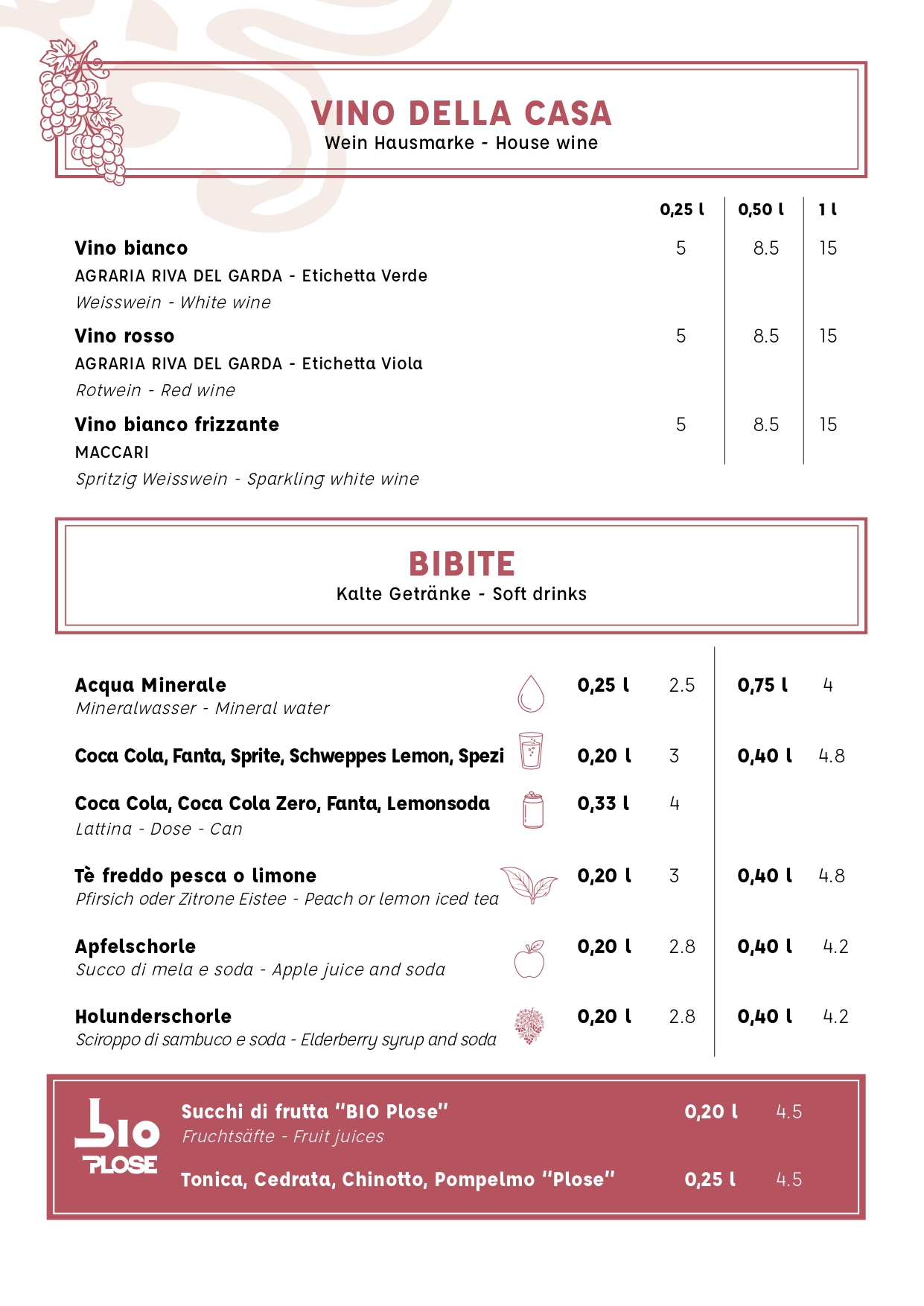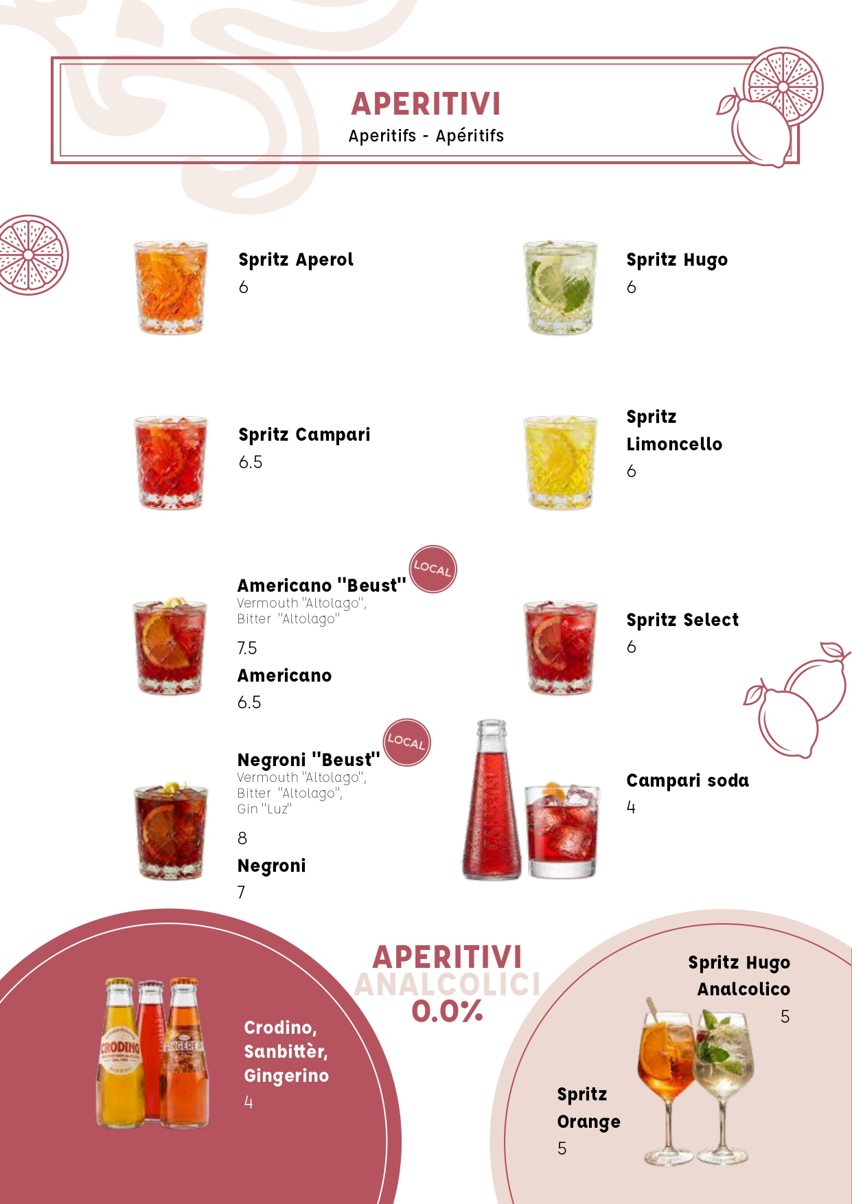 Al ristorante Casa Beust potete fare tutto questo rinfrescati dal vento “Ora”, ammirando il panorama e le traiettorie di barche a vela e surfisti. È inoltre sempre attivo il servizio bar, che offre: