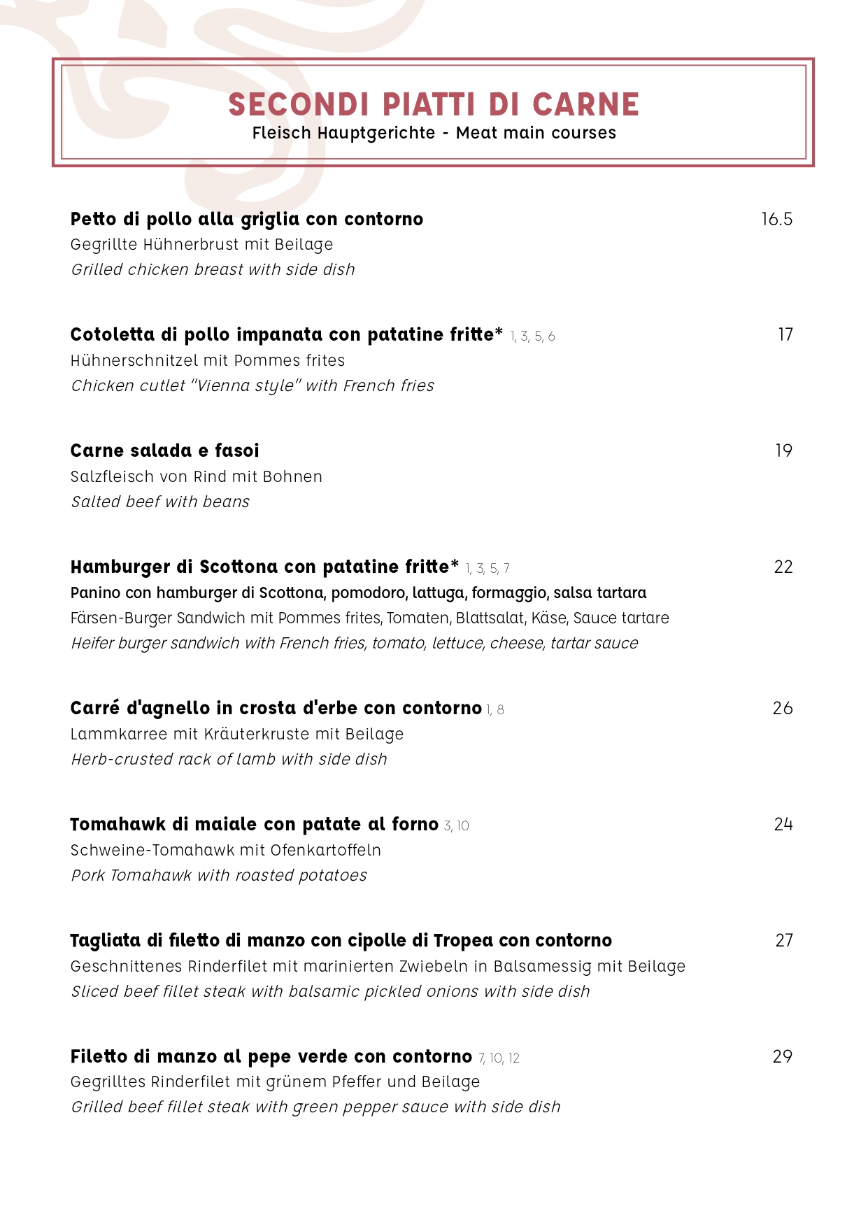 Anche gli amanti della carne troveranno soddisfazione con il filetto e la “carne salada”, specialità tipica del nostro territorio.